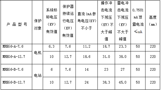 五、適用條件1、 環(huán)境溫度-4060 。2、海拔高度不超過3000m。3、交流系統(tǒng)的頻率為4862HZ。4、最大風速為35m/s。六、用戶須知用戶根據(jù)被保護對象和使用地區(qū)正確選擇保護器的型號和參數(shù)。在運輸、貯存、開箱和安裝時,注意保護器不要受到?jīng)_擊和碰撞,在安裝使用前,放在清潔、干燥的房間內(nèi),不要受到腐蝕性氣體或液體的侵蝕。1、保護器在投入運行前和投入運行1-2年后作預防性試驗,其試驗項目為:直流1mA參考電壓測量(其值應不小于表一中的規(guī)定);0.75U1mA下漏電流測量(所有型號的漏電流值均不大于50)。2、保護器兩端長期施加的電壓不得超過STPB的持續(xù)運行電壓。3、保護器在和三相電源(A、B、C)及接地端連接時,須注意以下事項:(1)電纜外端裸露的連接線鼻子相互之間距離,應滿足不同電壓等級的不同相帶電導體之間保持的最小安全距離的要求;(2)保護器連接電纜線之間的安全距離及保護器連接電纜線與不同相母線(或柜體)之間的安全距離應不小于該型保護器電纜出口處的相間距離(應在電纜拉緊狀況下);(3)高壓電纜長度要根據(jù)安裝位置進行選擇,長短要適當,高壓電纜過長時可將該相電纜捆扎固定在同相母排(線)上,嚴禁將不同相電纜捆扎在一起;(4)安裝時嚴禁手提電纜.同時要注意避免高壓電纜被銳器割破.七、型號及技術(shù)參數(shù)